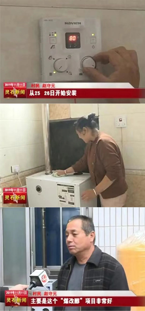 慶東納碧安的落地式甲醇鍋爐MGB500早在2019年便投入山西晉中與河北威縣的煤改醇試點(diǎn)項(xiàng)目中。并且在靈石電視臺(tái)對(duì)山西煤改醇工作的采訪報(bào)道中,受訪用戶(hù)對(duì)慶東納碧安甲醇鍋爐的采暖效果十分認(rèn)可,利用當(dāng)?shù)乇容^充足的醇燃料,為當(dāng)?shù)刈?hù)帶來(lái)了舒適的清潔采暖體驗(yàn),有效改善了當(dāng)?shù)卮髿馕廴镜膯?wèn)題。