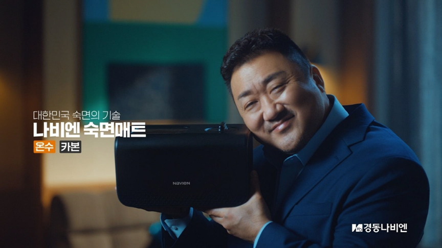 2023年,慶東納碧安韓國(guó)總部正式簽約馬東錫為品牌代言人,并于當(dāng)年秋冬推出兩支廣告片:一支圍繞“冷凝ON AI熱水器”,一支則聚焦“舒眠床墊”。廣告中,他沒有冗長(zhǎng)對(duì)白,只有幾句平實(shí)話語:“熱水,試試納碧安的技術(shù)吧?!? “要想睡得好,靠的不是偶然,是技術(shù)。”